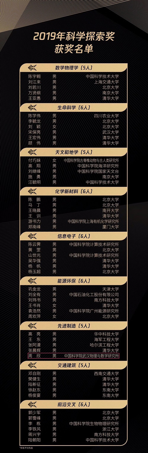 2019年"科学探索奖"获奖名单 链接:https://mp.weixin.qq.com/s/PGQPJchuyrNVq-UZsx4U1w