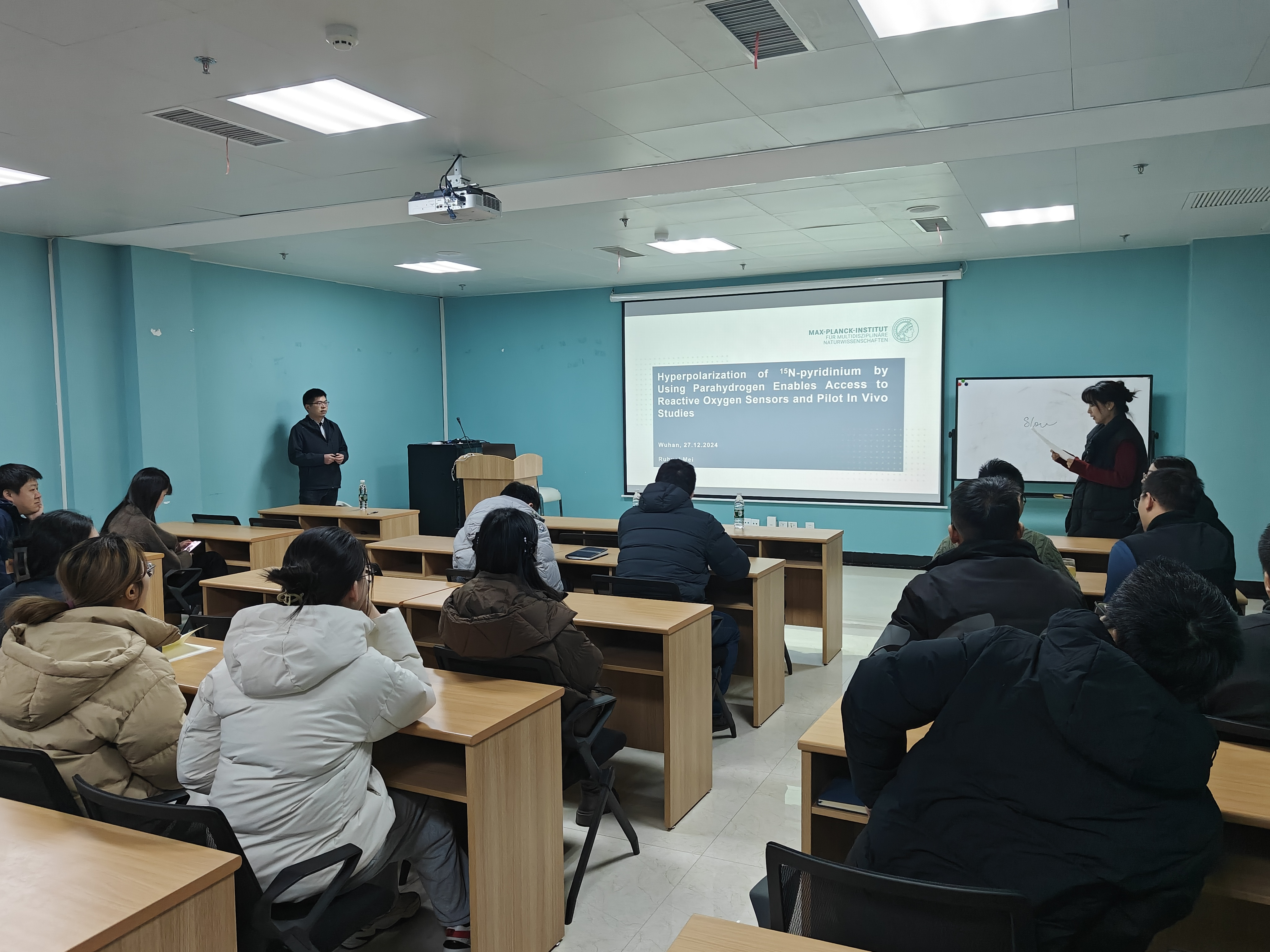 2024年12月27日,德国马克斯普朗克多学科科学研究所的梅汝槐博士应超灵敏磁共振组邀请在中国科学院精密测量院M楼1819会议室做题为“Hyperpolarization of 15N-pyridinium by Using Parahydrogen Enables Access to Reactive Oxygen Sensors and Pilot In Vivo Studies”的学术报告,此次报告由陈世桢研究员主持。